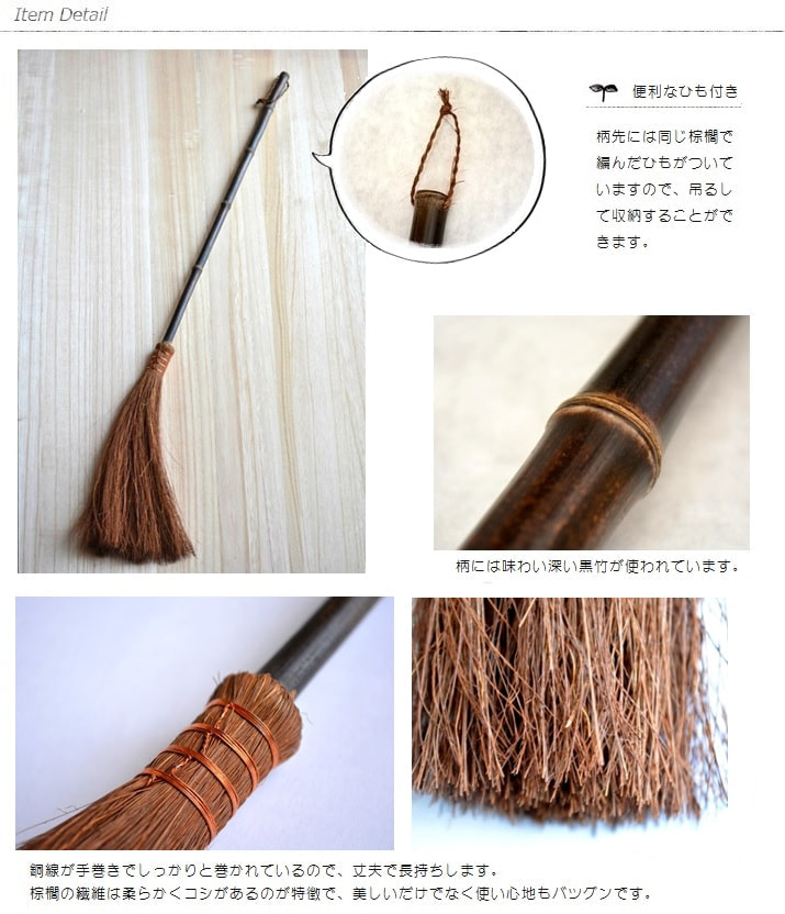 選りすぐりの棕櫚繊維を束ねて作られるはたきは、程良く