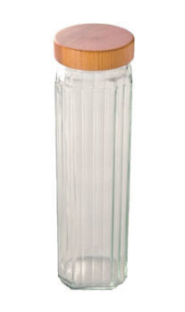 ガラスに木目の美しいケヤキの蓋を合わせたMokuNejiの「パスタケース」です。