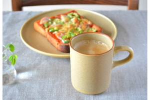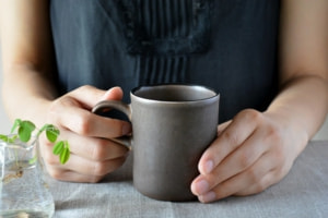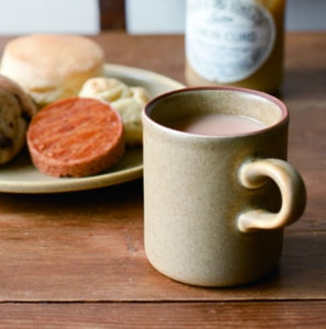 マグの持ち手と、底の丸みがほっこりとしたやさしい雰囲気。