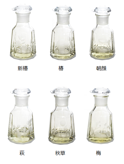 季節の草花をあしらった美しい切子模様は、全6種類。職人が一つひとつ丁寧に手でカットしています。