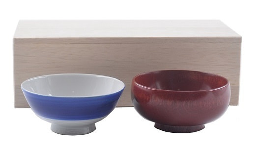 ◆ “長方形タイプ” の木箱セットには、小サイズのくーわん・ふーわんが1点ずつ収められています。