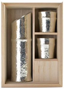 老舗鋳物メーカー・能作と日本料理の老舗「日本橋ゆかり」の三代目料理人・野永喜三夫氏がコラボレーションして製作した酒器セットです。