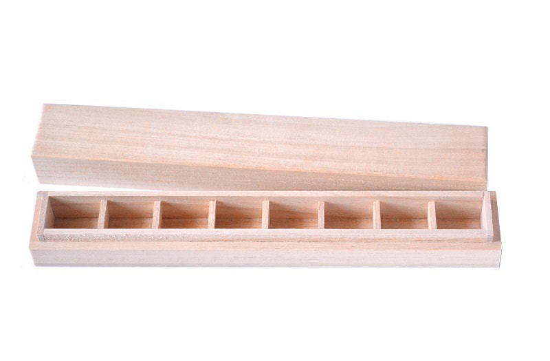 印泥と一緒にセットできる桐箱です。右側部分は、2cmの横幅ですので、7.5mm角や9.5mm角なら2本収納できます。