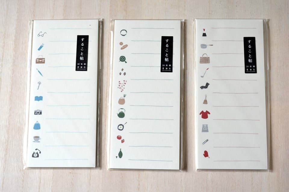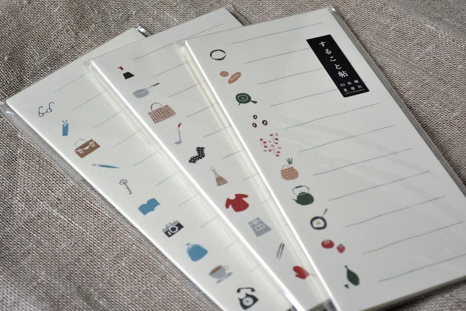 毎日のようにやってくる買い物や献立決め。そんな日々の暮らしが楽しくなるようにと作られた「すること帖」は、タスクごとに絵柄を使い分けても分かりやすく、レシピのメモなどにも良さそうです。台紙はしっかりとした厚紙を使用し、同柄20枚綴りになっています。