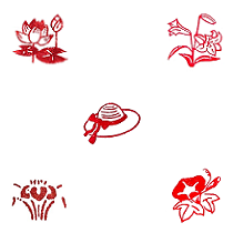 遊楽の印「麦わら帽子 / 蓮の花 / ゆりの花 / 杜若 / 朝顔」12mm