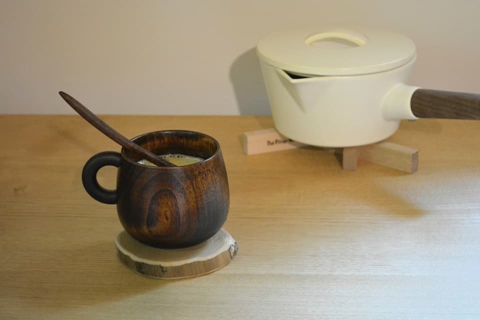 取っ手には国産のカエデ材を使用しており、手に持っても熱くなり過ぎず、温かい飲みものが冷めにくいのも漆器ならでは。キャンプなどのアウトドアにもぴったりです。満水容量は250mlとたっぷりサイズなので、スープカップとしても。
