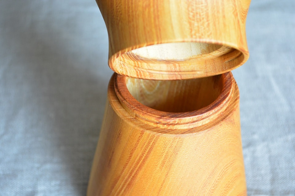 MokuNejiシリーズは、そんな山中漆器産地で培われてきた木工ろくろの高い技術と、精緻なネジ切りの技術を使った「工芸」×「工業」の新しいプロダクトシリーズです。すべての製品には木目の美しい天然木を使用しています。