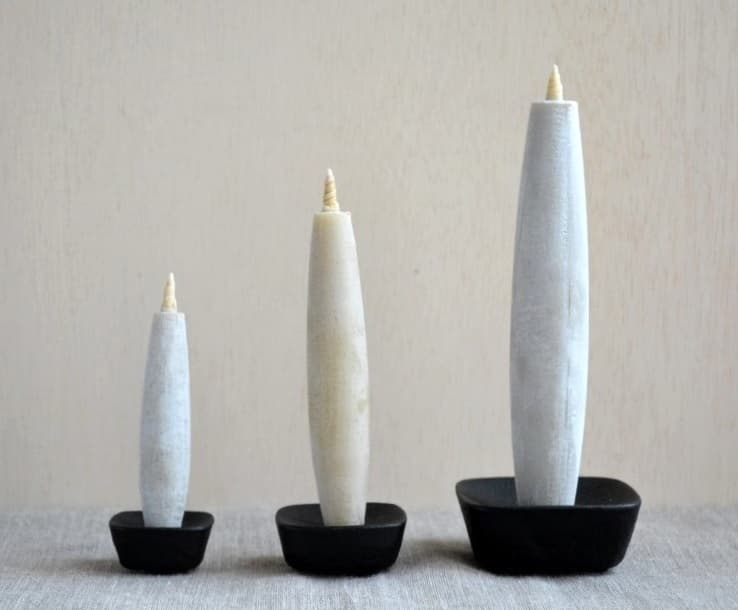 また、裏面には3つの突起が付いており、机が熱くなり過ぎないように工夫されていたりと、シンプルで無駄のない美しい燭台です。